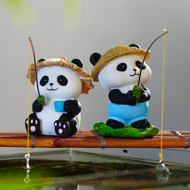 鱼缸水族箱造景熊猫钓鱼翁庭院流水鱼池假山乌龟缸微景观装饰摆饰