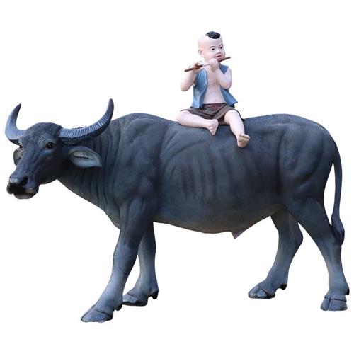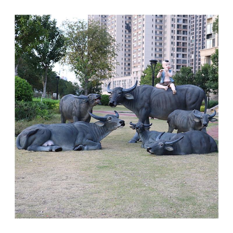 仿真奶牛雕塑牧童骑水牛大型摆件农耕文化模型玻璃钢园林景观动物