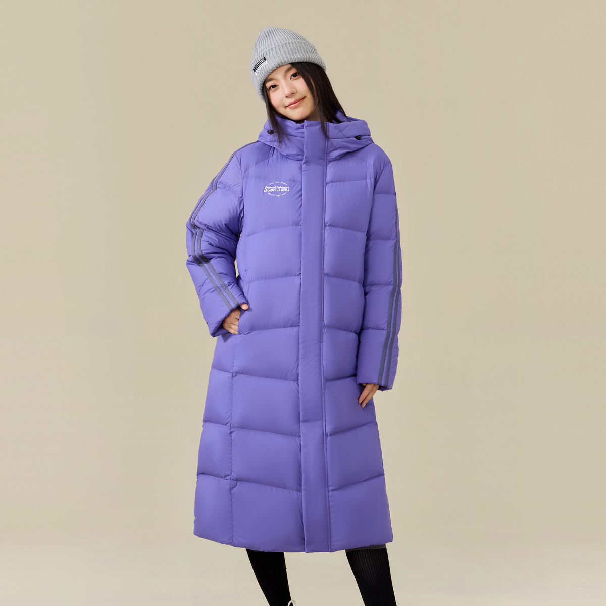 雪中飞2025冬新款二条纹男女情侣长款连帽羽绒服高充绒学院运动