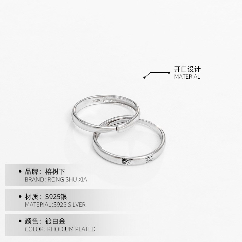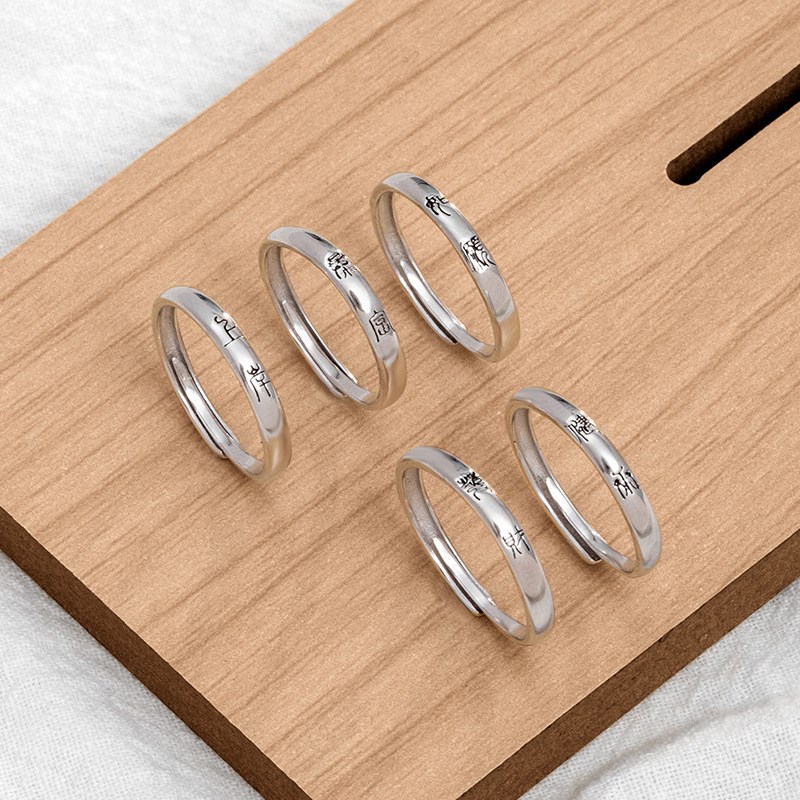 纯银戒指国潮复古上岸暴富如愿发财健康中国文字系列警世格言女戒