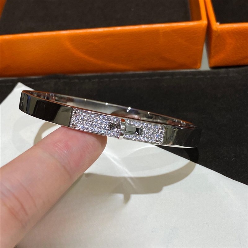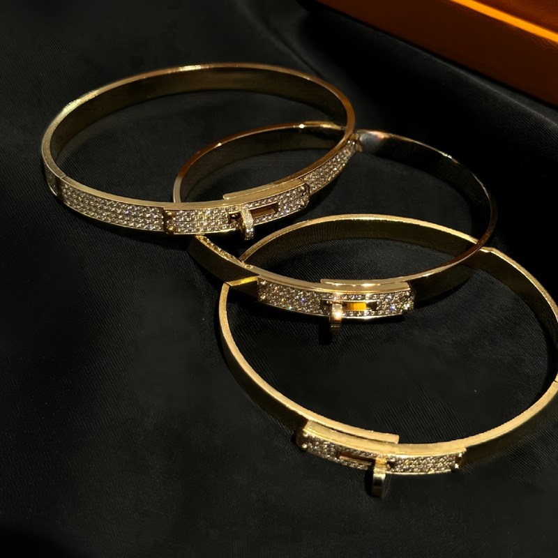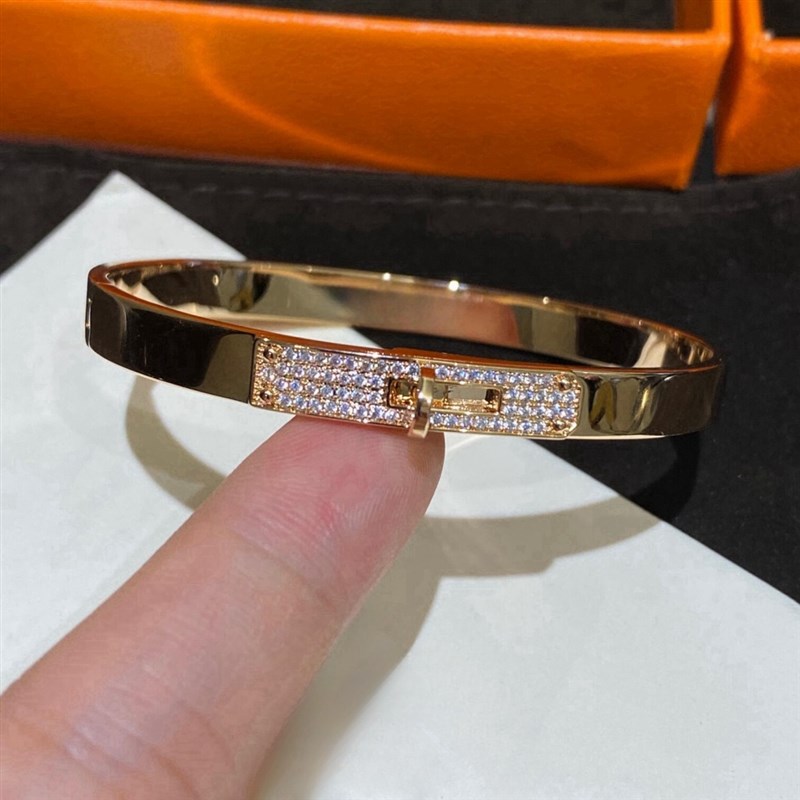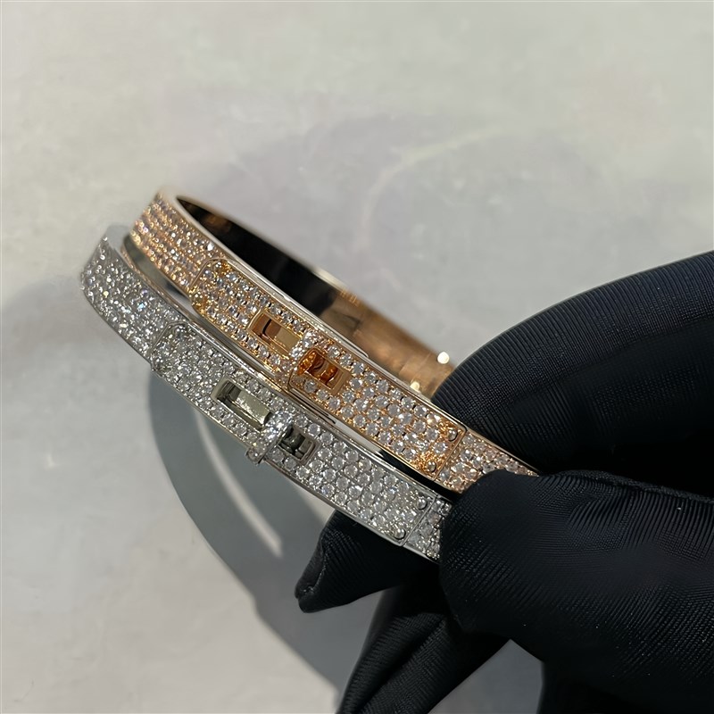 高版玫瑰金满钻锁头扣手镯凯莉半钻旋转猪鼻子手环轻奢小众女韩潮