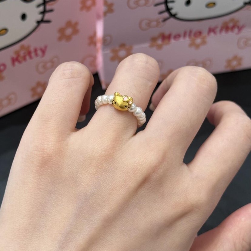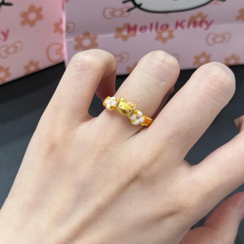 hello kitty黄金戒指足金999凯蒂猫kt猫指环送女友七夕情人节礼物