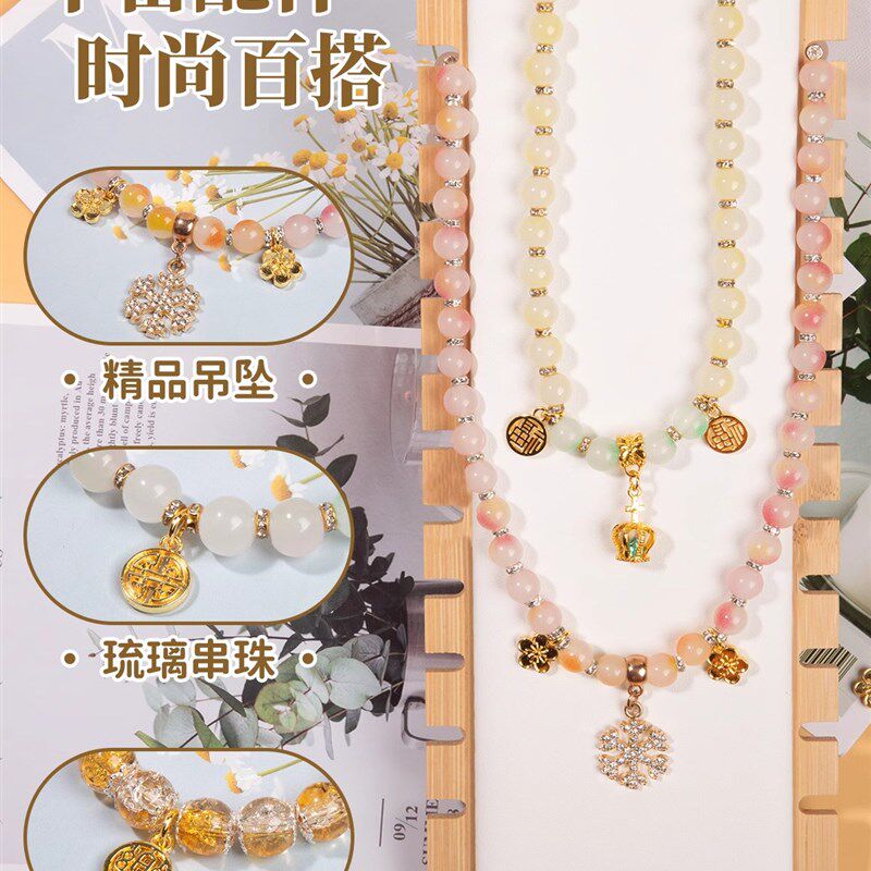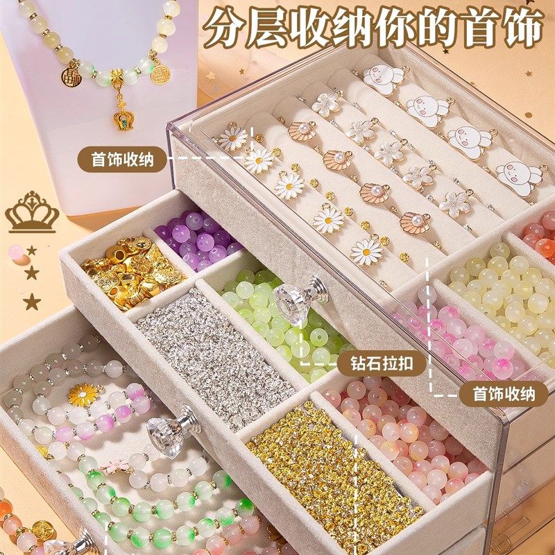 儿童手链diy女童串珠女孩首饰水晶珠子材料包编织成人饰品配件小