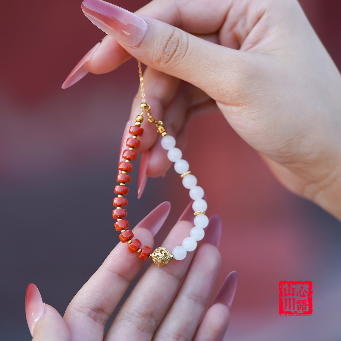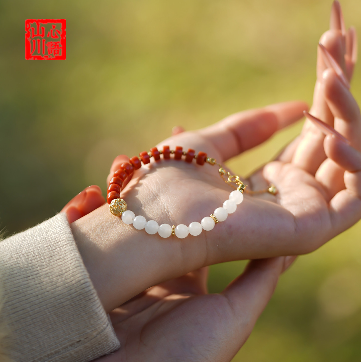 马年本命年手链天然南红玛瑙手串女红色宝石转运珠和田玉白玉串珠