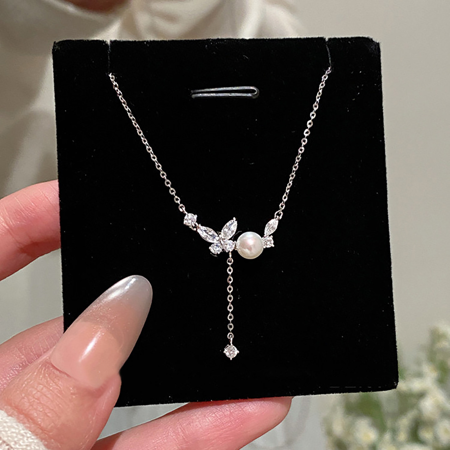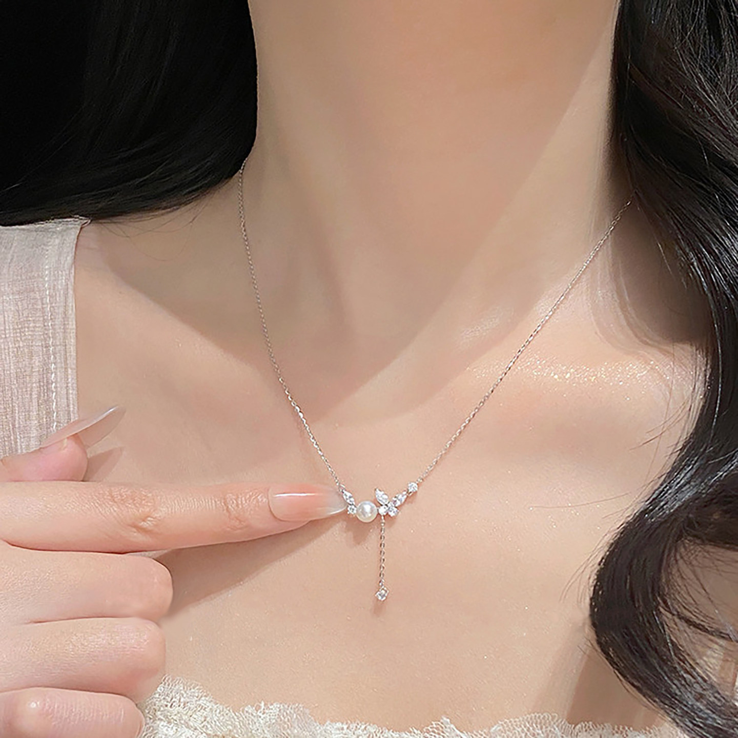 锆石蝴蝶珍珠流苏吊坠项链女2026年新款爆款高级感锁骨链时尚颈链