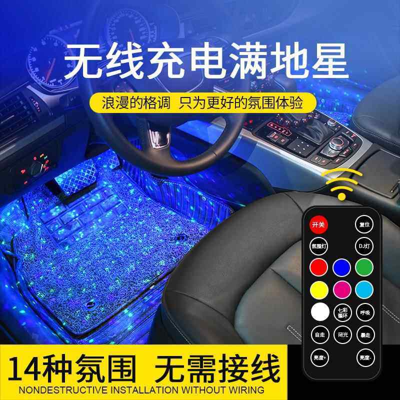 车载脚底usb氛围灯无线感应声控节奏ed灯车内免接线改装汽车内饰