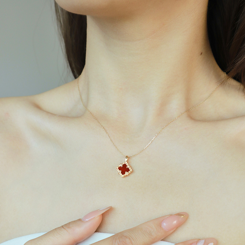 CLORIS YING幸运四叶草项链女款宫廷风复古红色玛瑙吊坠锁骨颈链