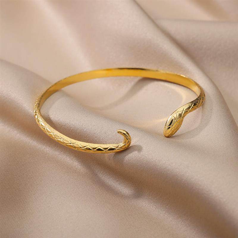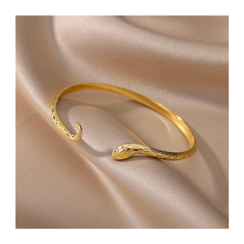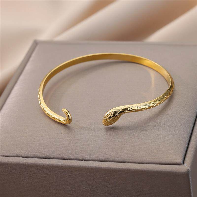 Punk Snake Bangles For Men Women Open Gold Color Stainless S