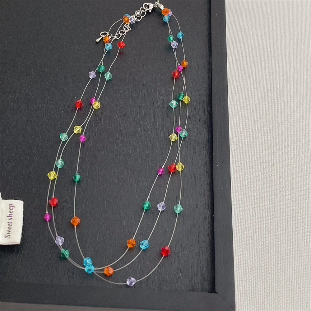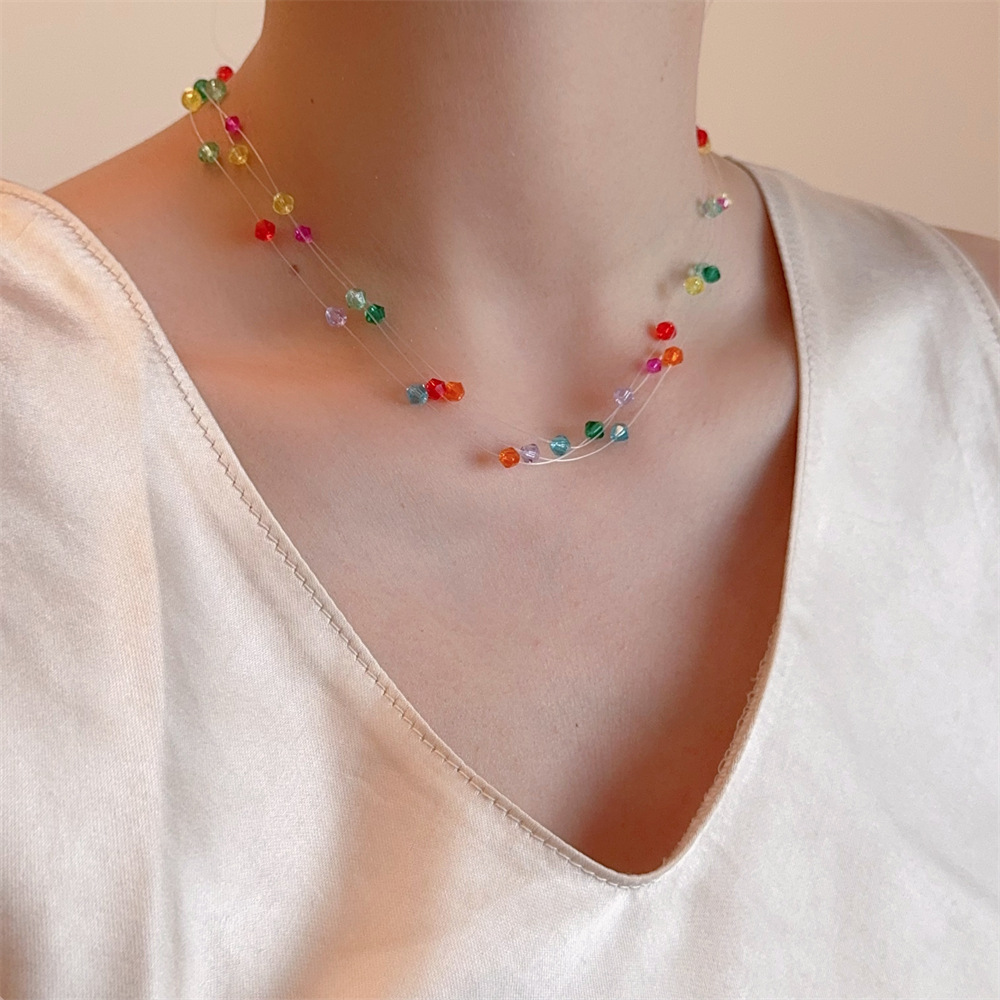 春日多巴胺彩色多层串珠项链女小众设计简约气质颈链高级感锁骨链
