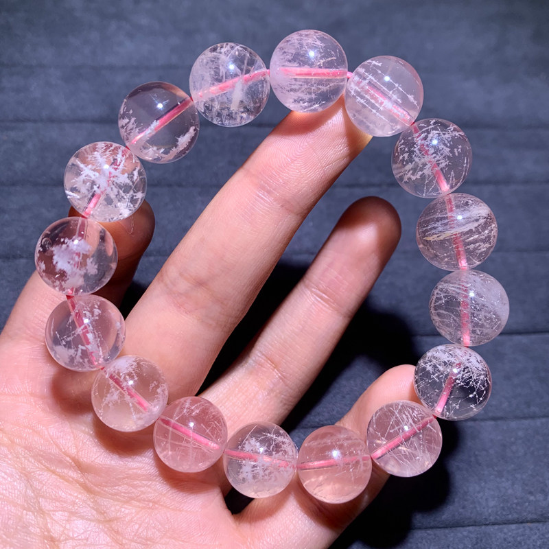 天然星光粉雪花幽灵单圈手链水晶新矿种冰透幽灵水晶手串一物一图