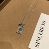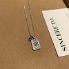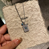 中古超闪蓝色满钻无事牌吊坠项链女精致镂空轻奢设计感锁骨链