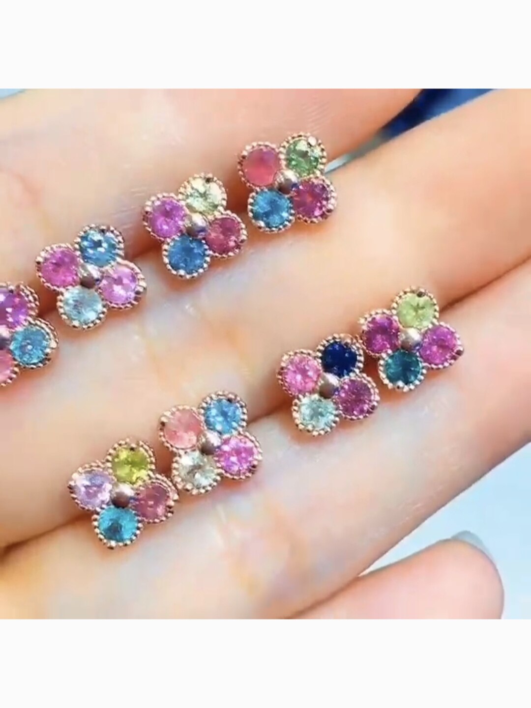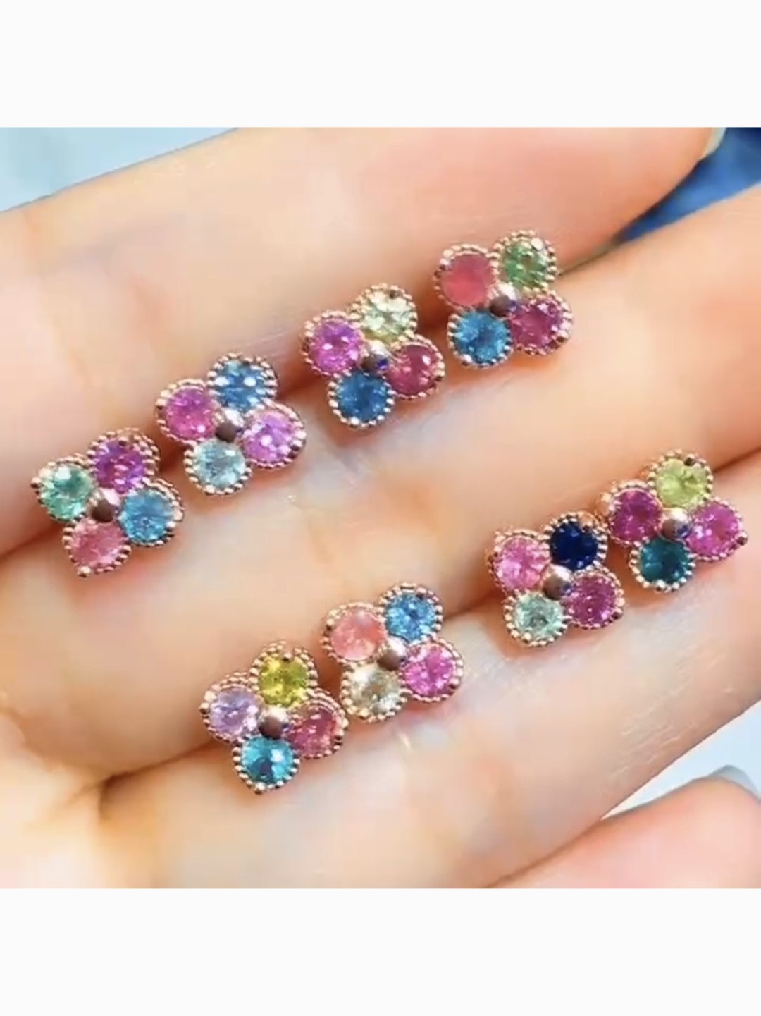 天然巴西碧玺S925银耳钉绿色黄色粉色多宝幸运草女款饰品礼物促销