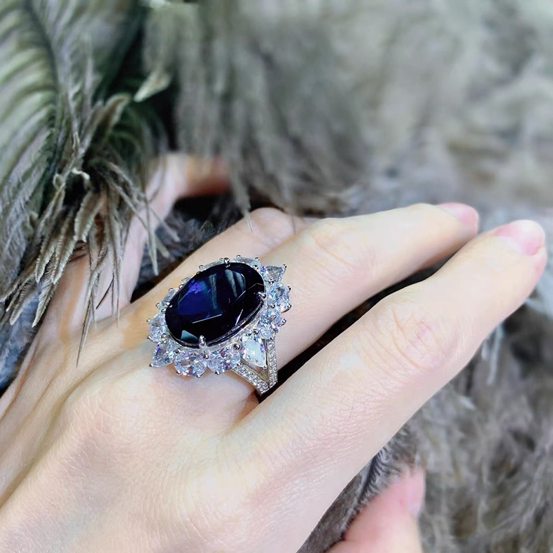 vintage新品高级感彩宝戒指女开口可调节轻奢小众设计轻奢ins指环