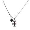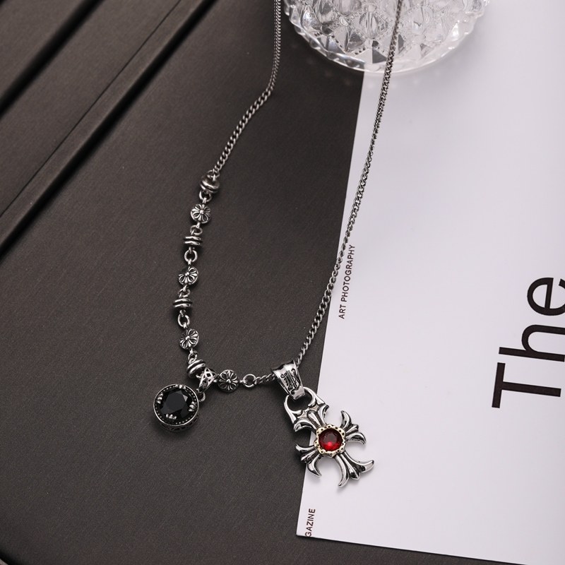个性复古设计感铜镶红色锆石十字架拼接黑色吊坠项链锁骨链男女款