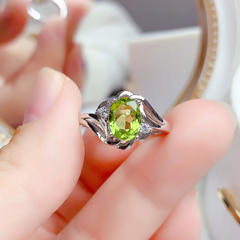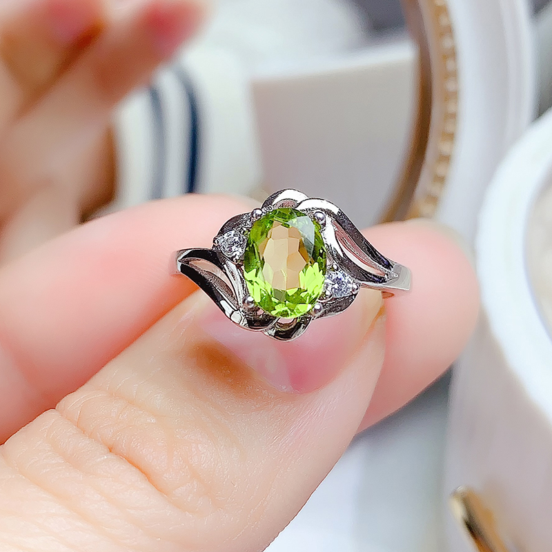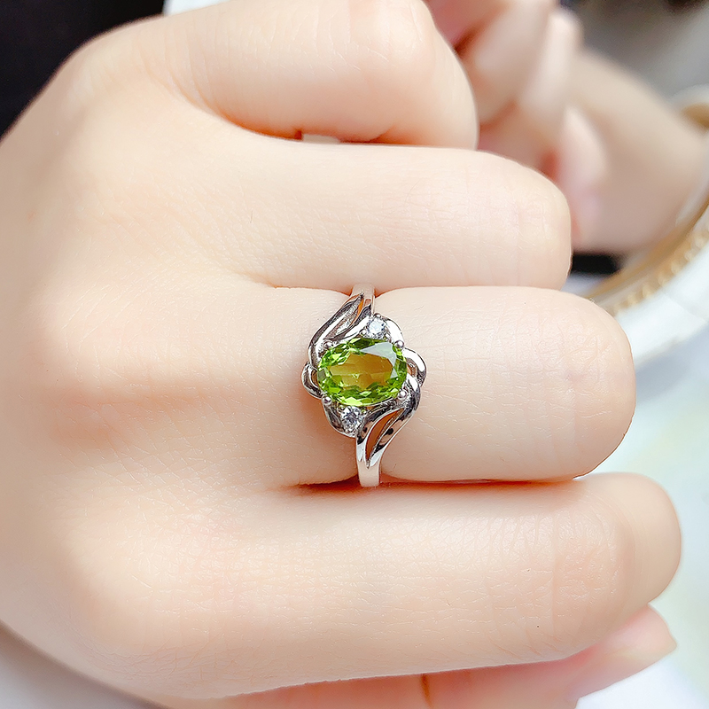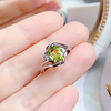 天然全净橄榄石开口戒指指环女925纯银镶嵌绿色宝石2克拉时尚银戒