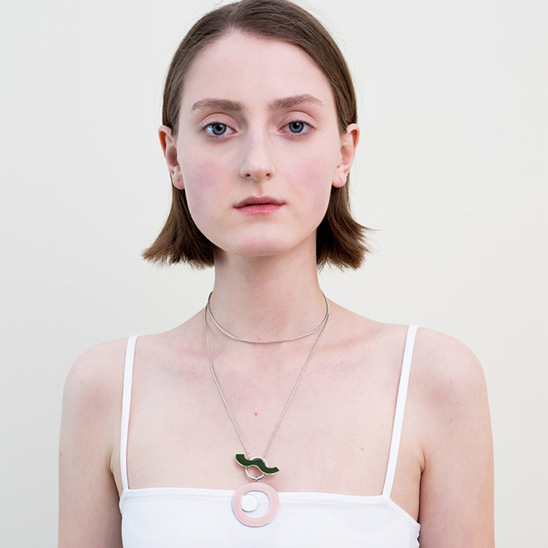 Mobile系列抽象珐琅色块不规则波浪缠绕式可调节项链 毛衣链