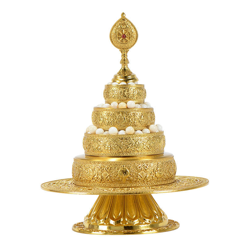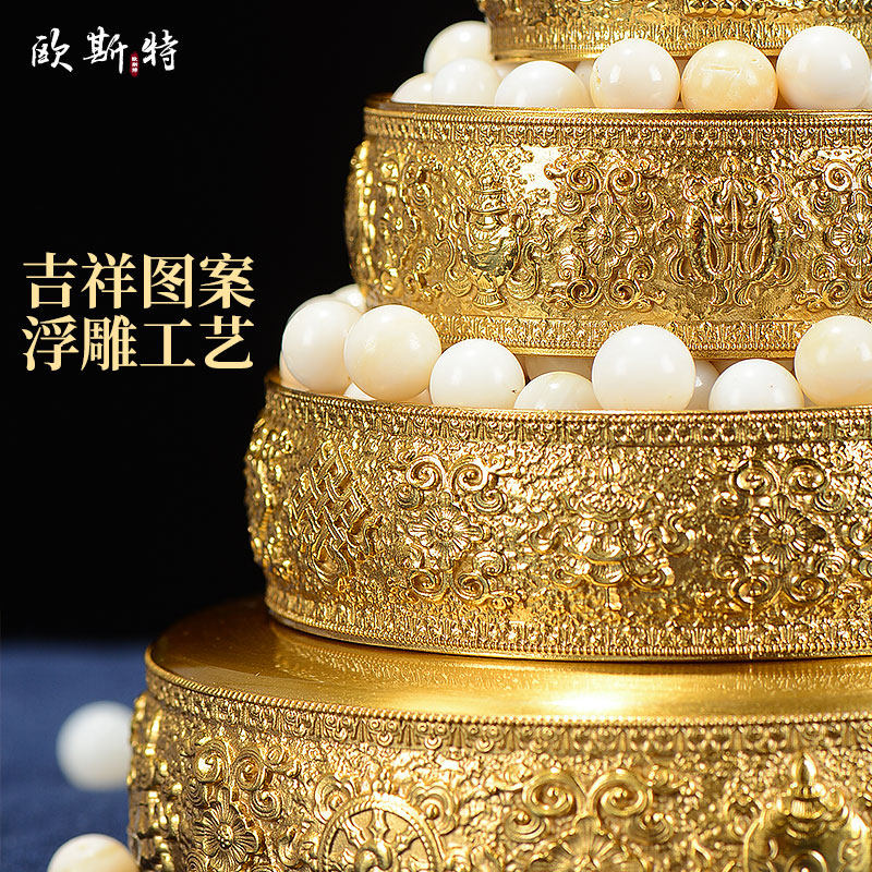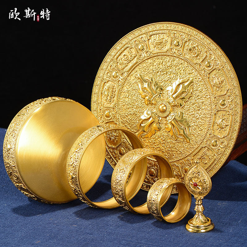 欧斯特曼扎盘修盘西藏铜鎏金精工雕花八吉祥曼达盘供修曼茶罗10cm