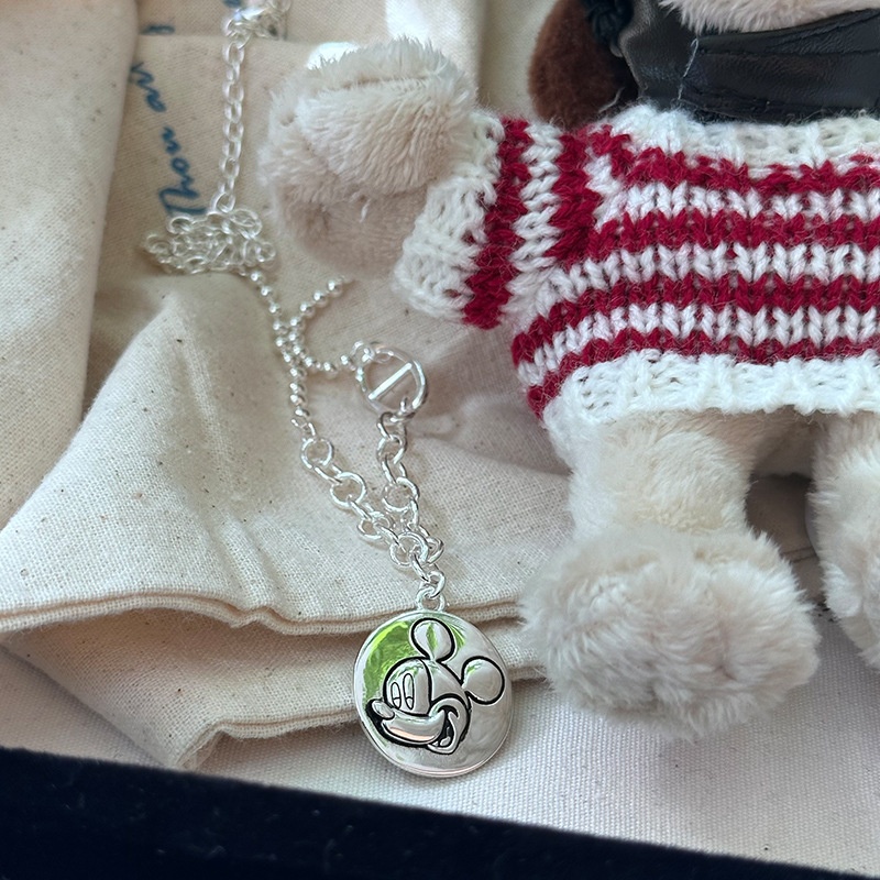 美汝仙 925纯银圆牌米老鼠项链女简约时髦个性拼接链条猪鼻子