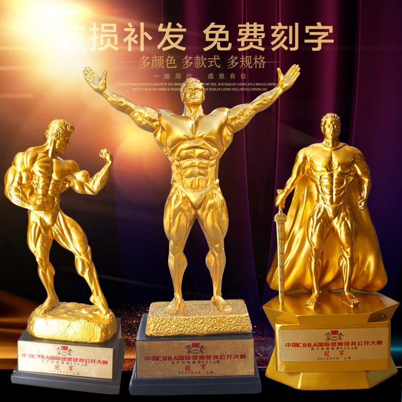 健美定制刻字奖杯欧式小金人物摆件树脂比赛健身房装饰工艺品礼物