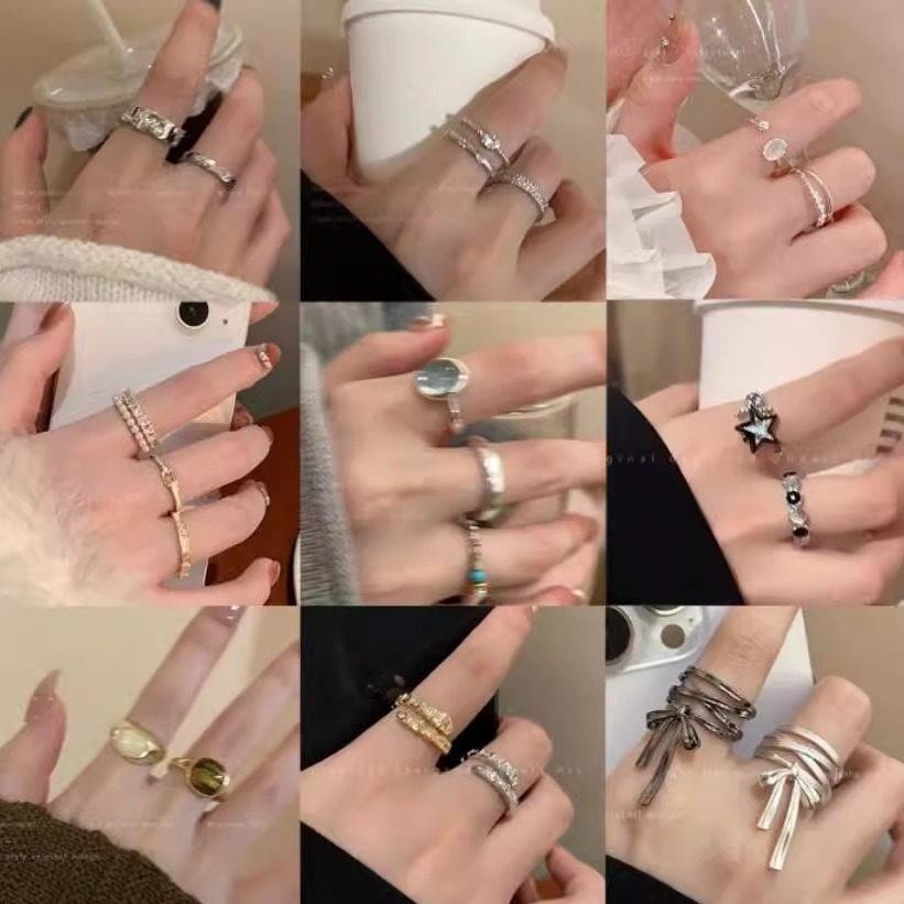 素圈戒指女时尚个性ins小众设计轻奢简约精致三件套指环开口气质
