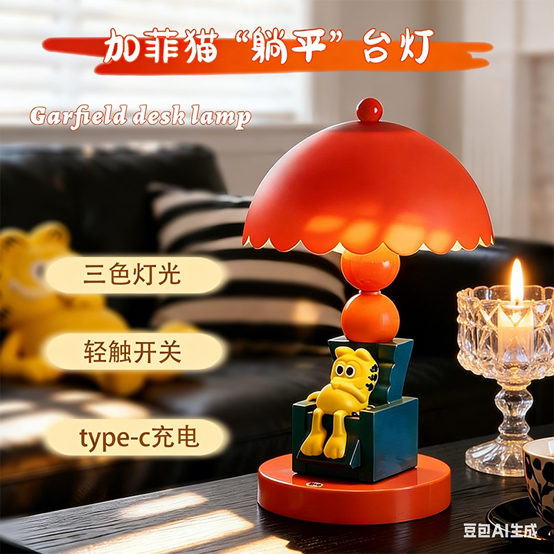 加菲猫躺平小夜灯橙色伞盖造型护眼灯桌面装饰灯送女友生日礼物