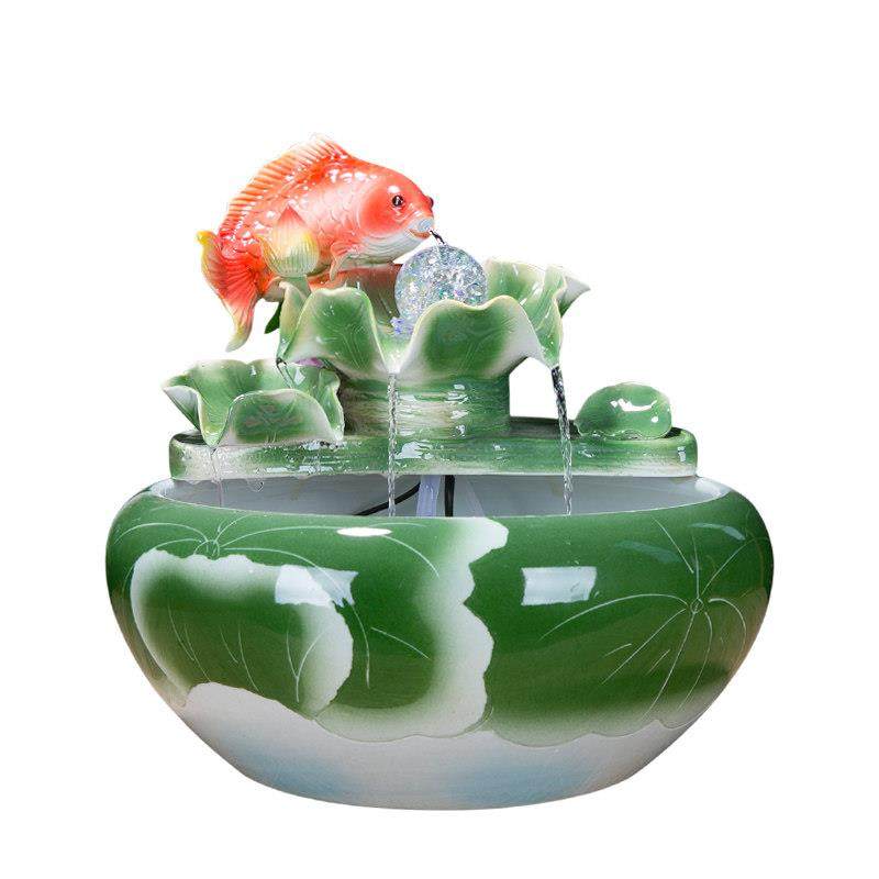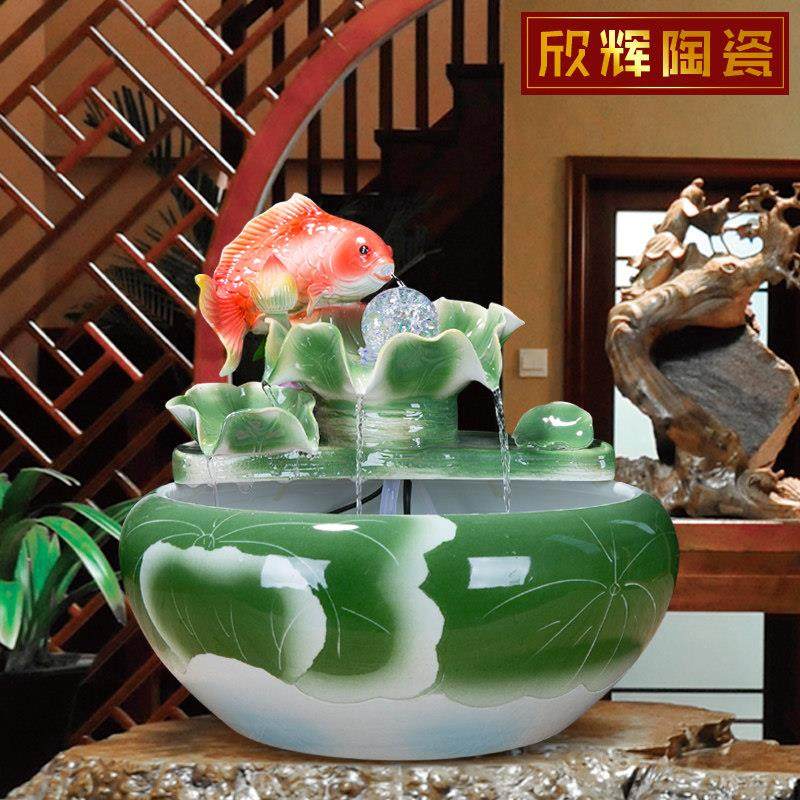 陶瓷流水喷泉雾化加湿器摆件风水轮招财鱼缸客厅办公桌面开业礼品