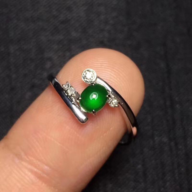 9k白金精工镶嵌小蛋面翡翠戒指男女时尚指环配石莫桑钻原创设计师