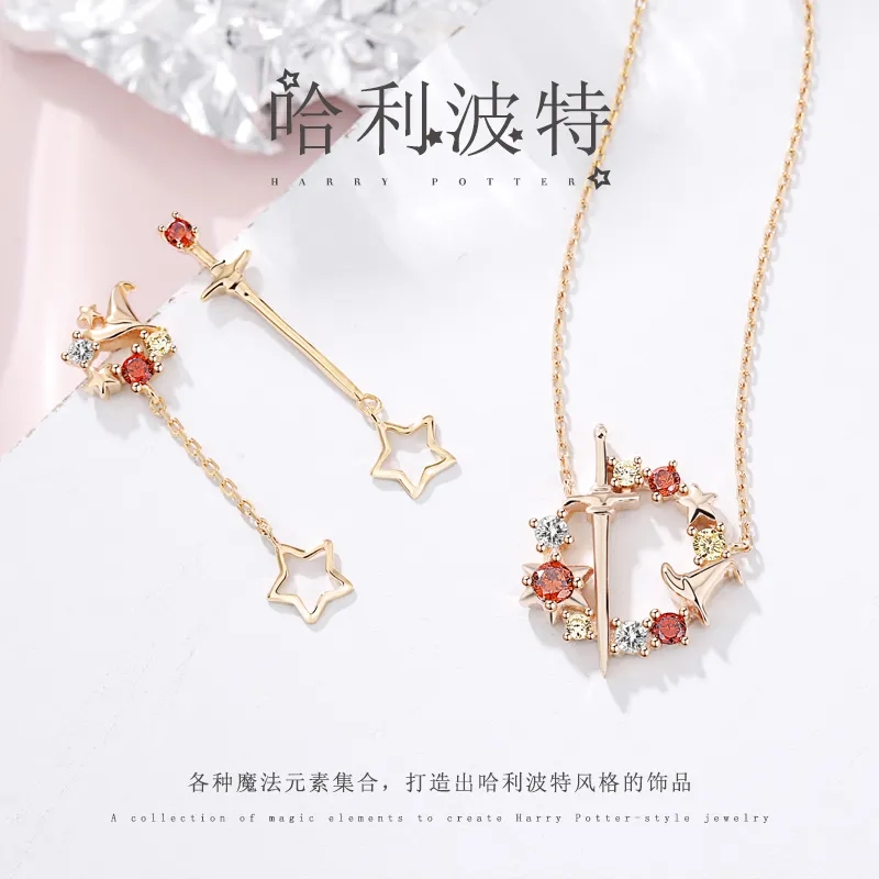 S925纯银哈利波特周边格兰芬多狮院项链锁骨链耳钉日系电影迷礼物