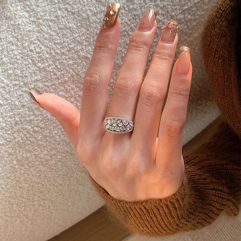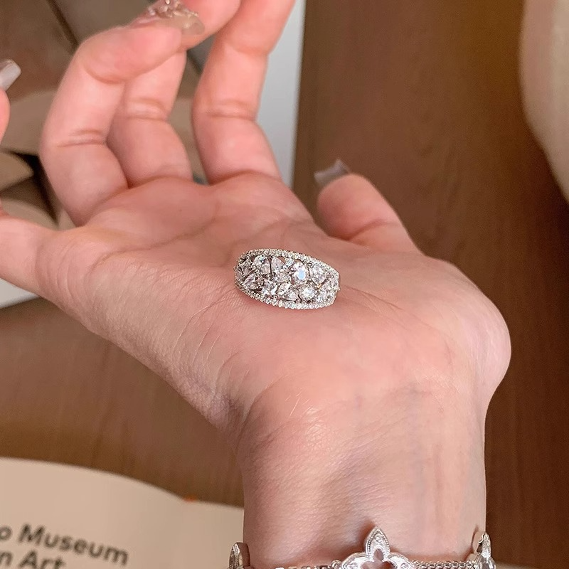 2025新款银色锆石宽边戒指女款轻奢高级感精致满钻可调节食指戒环