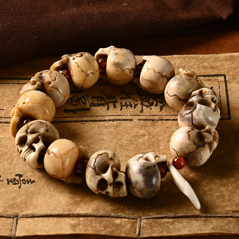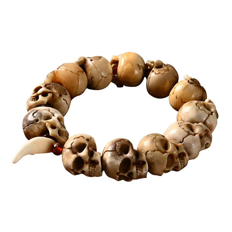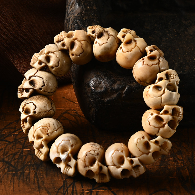 天然老料鹿角盘雕刻骷髅头手串鹿角尸陀林佛珠女男款手链饰品文玩