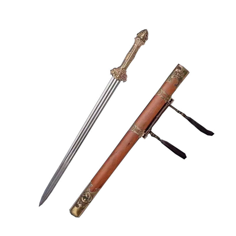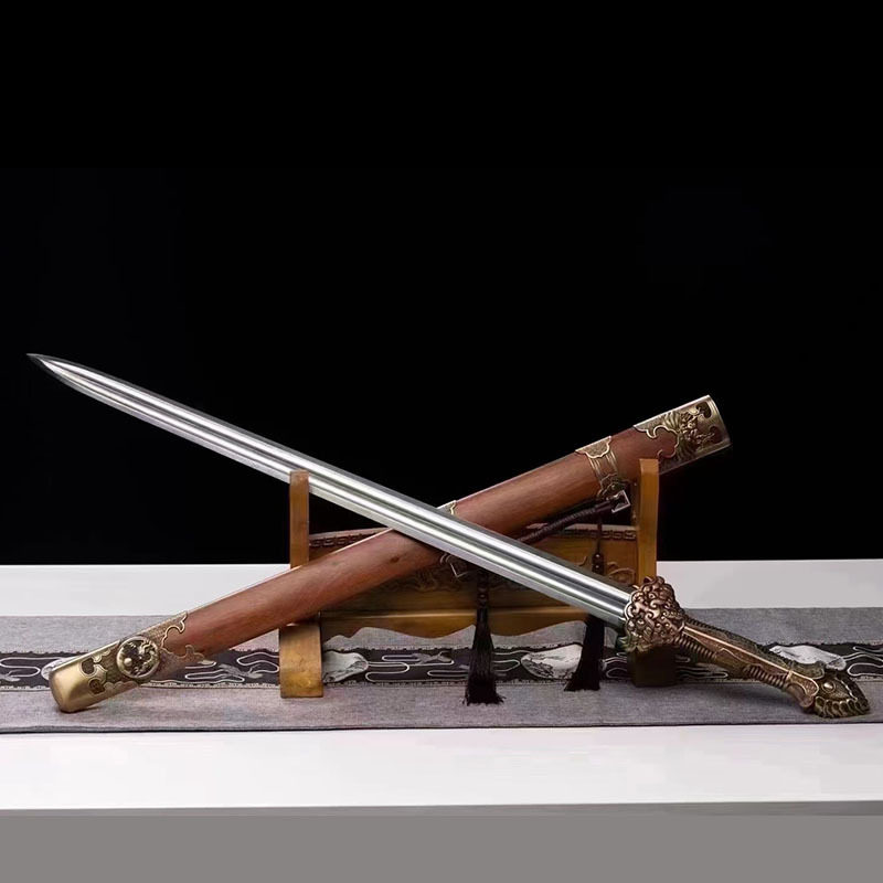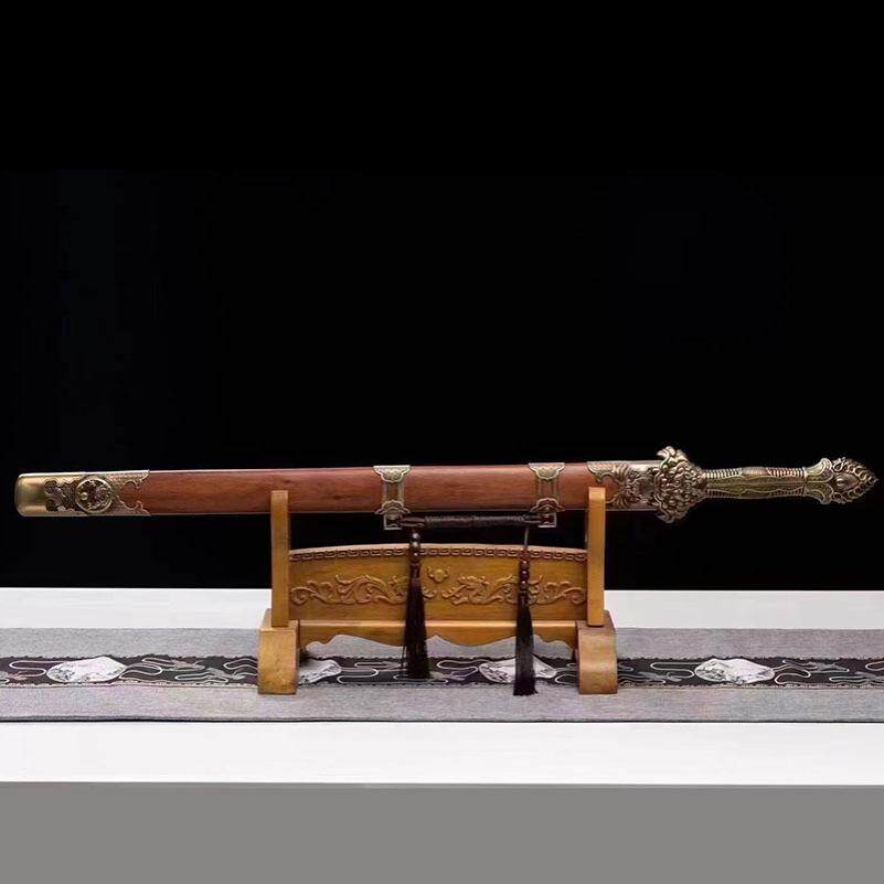 帝王剑手工锻打花纹钢宝剑双槽刀剑工艺品武器酸枝木刀鞘未开刃