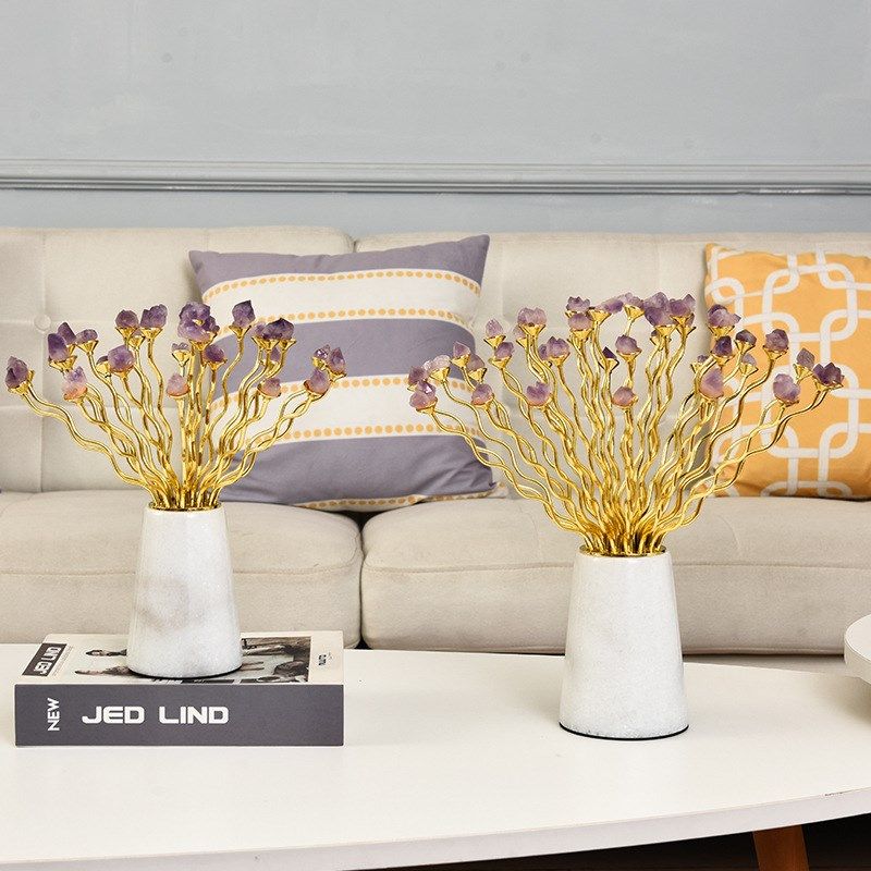 后现代简约天然紫水晶玄关u别墅软装摆件乔迁送礼样板房软装饰品