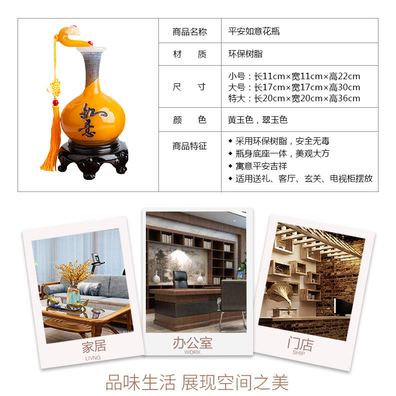 平安如意花瓶摆件客厅高端玄关酒柜博古架装饰工艺品乔迁新居礼物