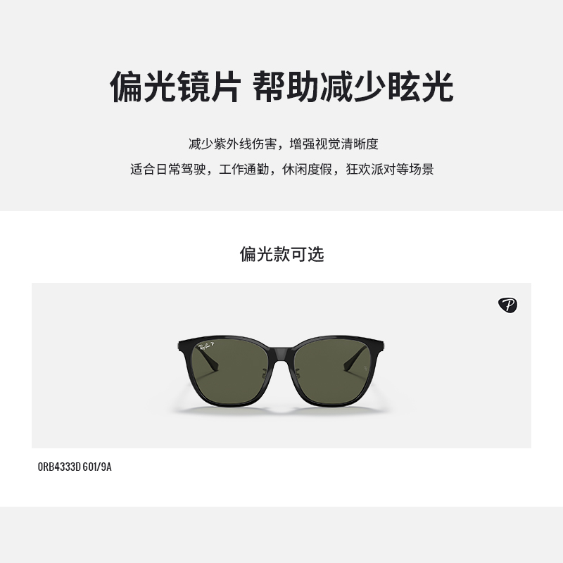 RayBan雷朋太阳镜黑超方形大框男女款眼镜有鼻托偏光墨镜0RB4333D