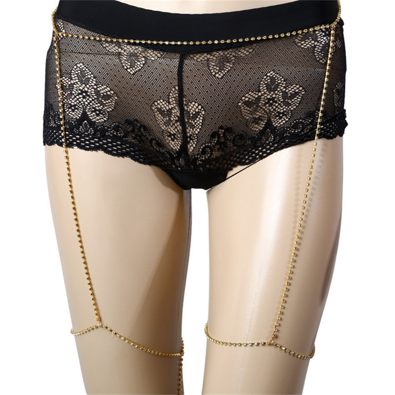 欧美性感闪耀水钻美腿链 比基尼沙滩身体链腰链爪链项链