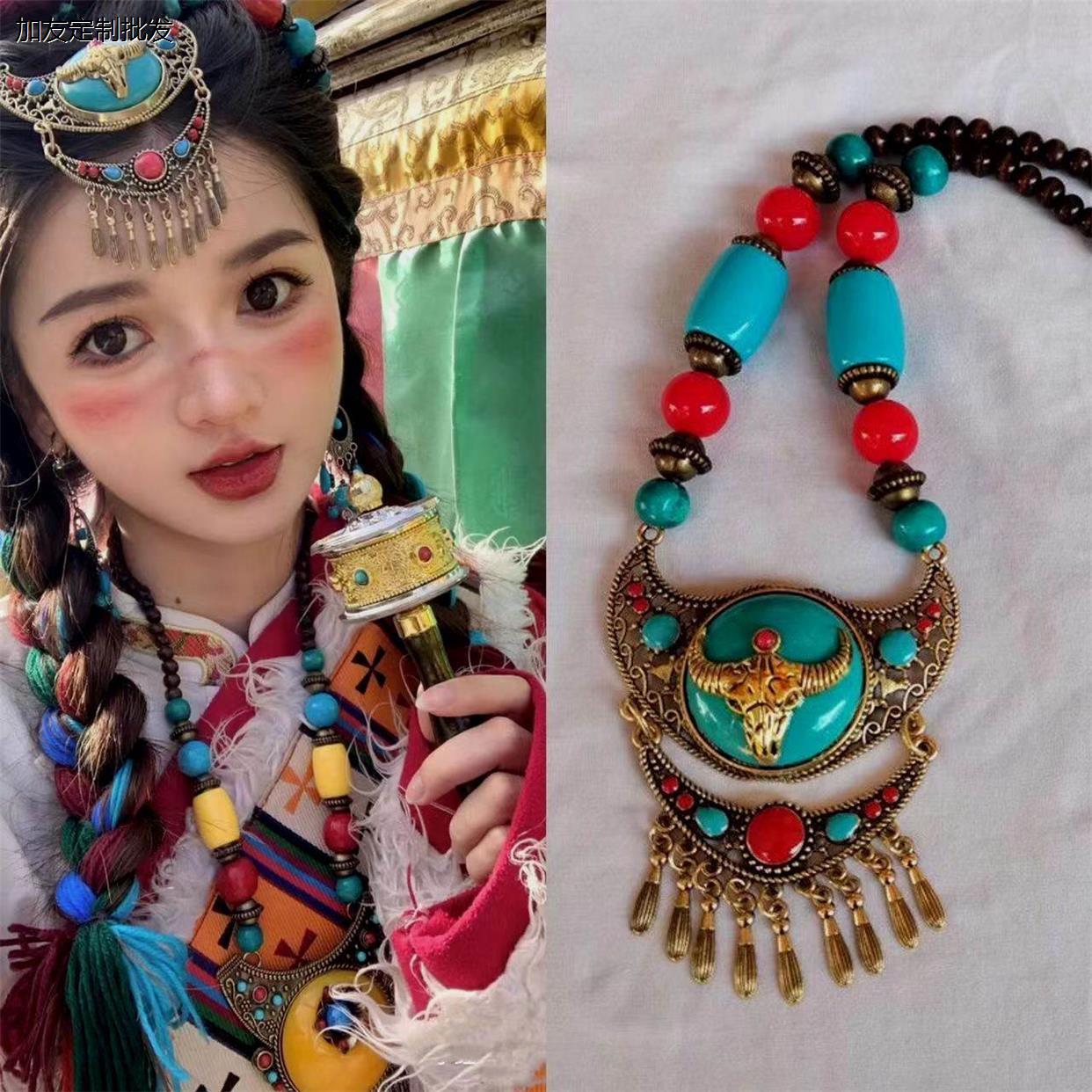 藏服配饰项链古装异域眉心坠西域风情饰品少数民族风头饰舞娘发饰