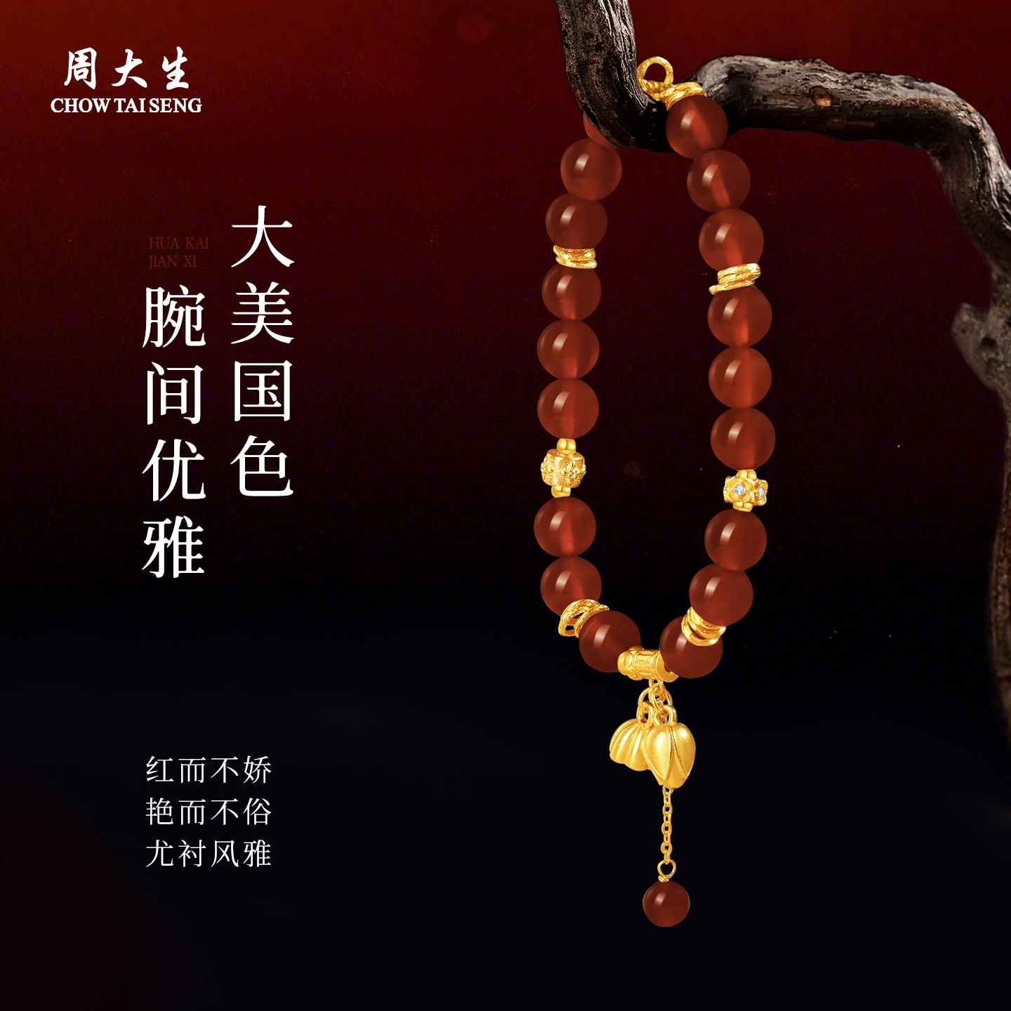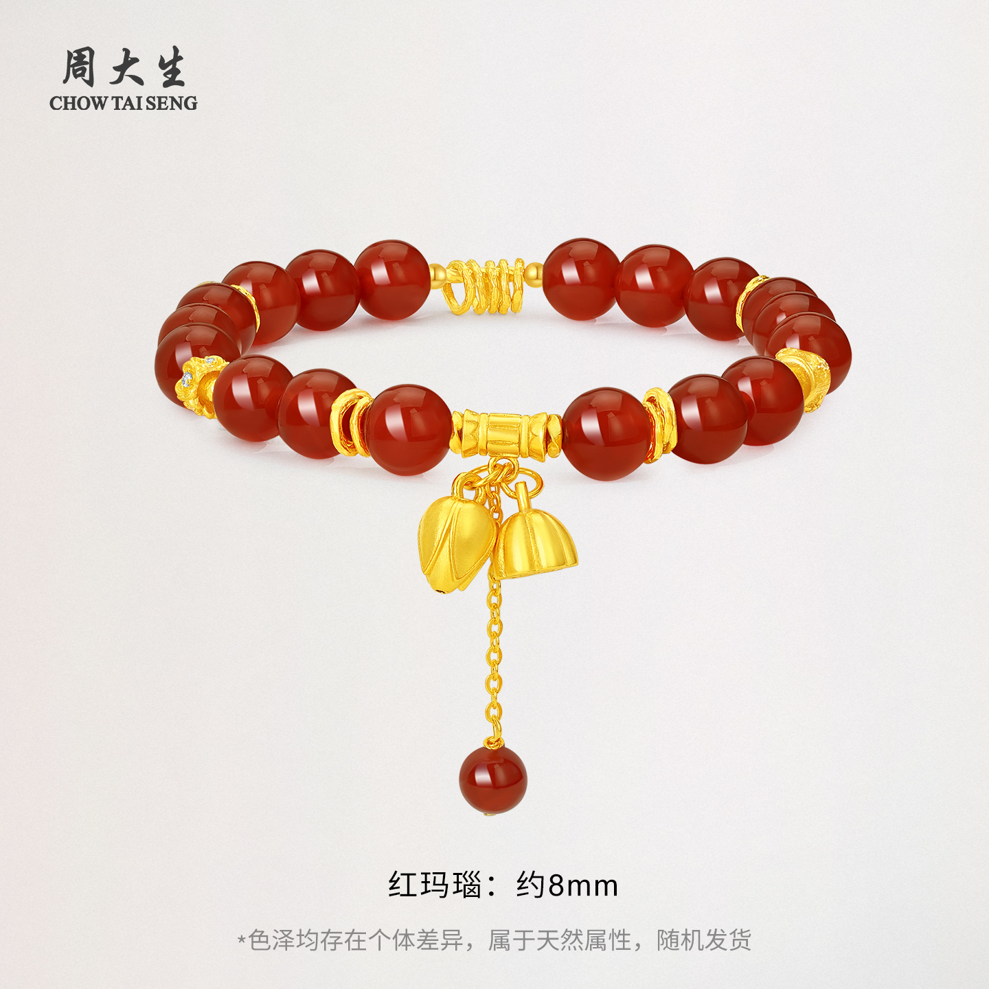 周大生官方红玛瑙串珠手链女本命年转运珠招财手串生日礼物送女友