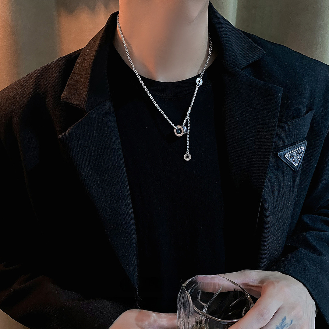 小蛮腰钛钢吊坠项链男高级感痞帅颈链确实小众设计感百搭锁骨链潮