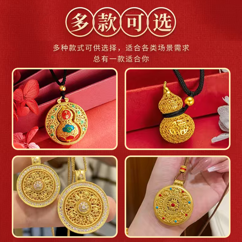 古法K金国风转运满天星吊坠女编织绳轻奢小众项链配饰送女友礼物