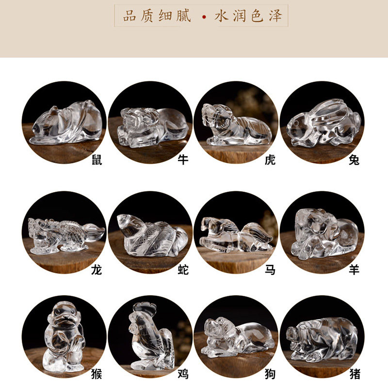 天然白水晶兔子摆件本命年可爱生肖属兔虎吉祥物家居饰品客厅桌面