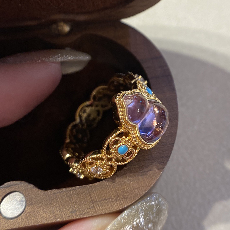 2026新款九紫离火葫芦戒指女古法国潮珐琅彩宝紫晶葫芦福禄指环