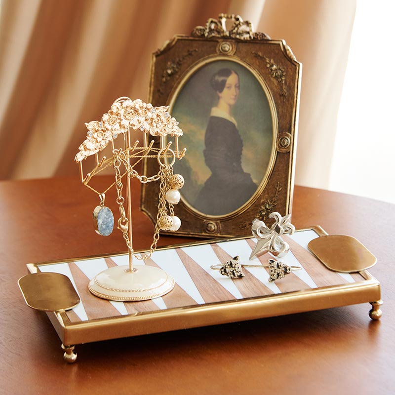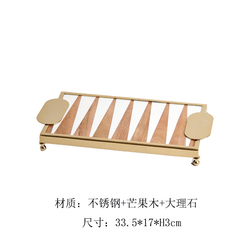 印度进口拼接双色长方形托盘欧式轻奢样板间客厅妆台收纳盘装饰品
