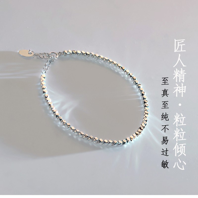 碎银手链女999纯银女生手链百搭轻奢设Z计个性
