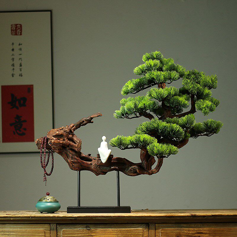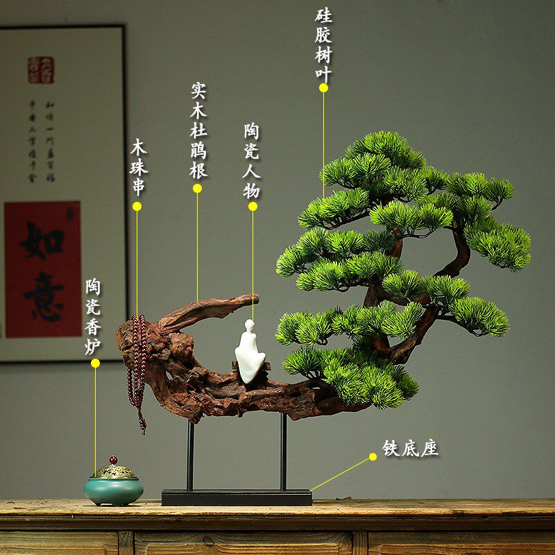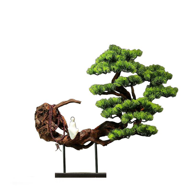 天然实木树根迎客松茶室书房玄关桌摆件中式酒店枯木逢春餐厅装饰