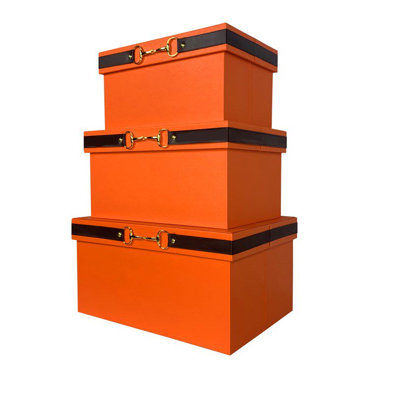 极速橙色样板房间装饰盒摆件软装收纳箱衣帽间皮质储物盒整理箱展