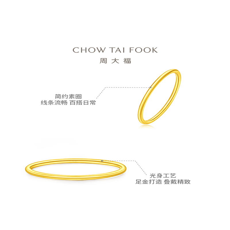 周大福简约素圈足金黄金戒指计价婚嫁F220488