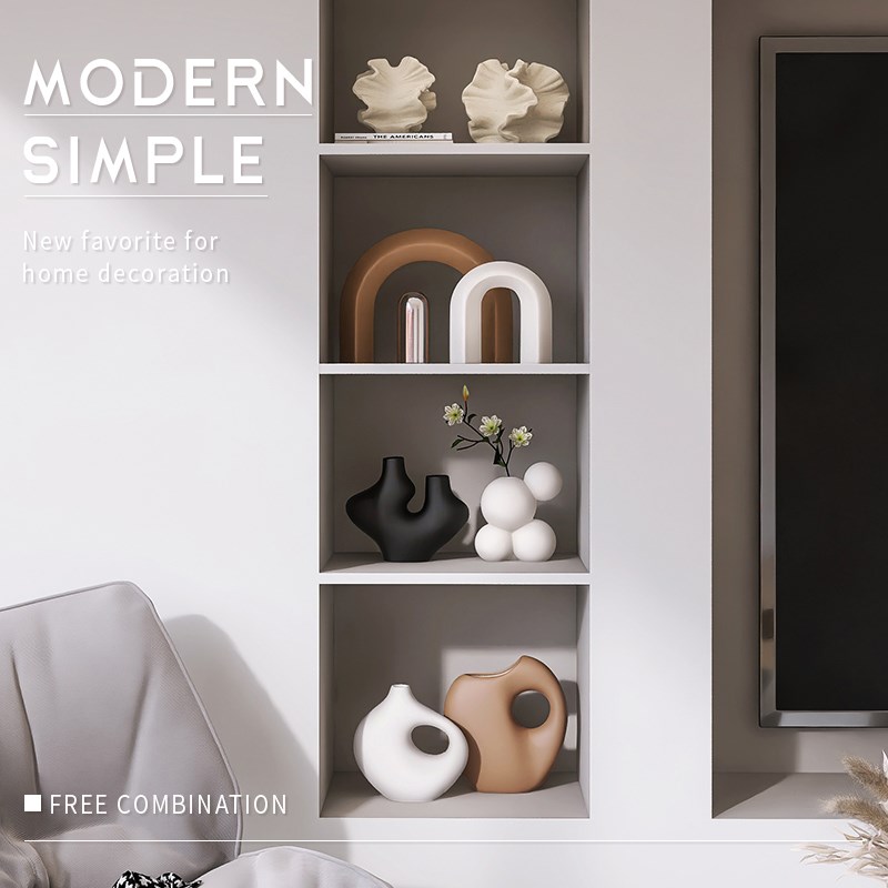 创意抽象艺术摆件现代花瓶v侘寂风软装饰品家居客厅电视柜酒柜摆