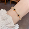 欧美跨境满锆黑色四叶花手链精致时尚轻奢百搭感超闪手饰