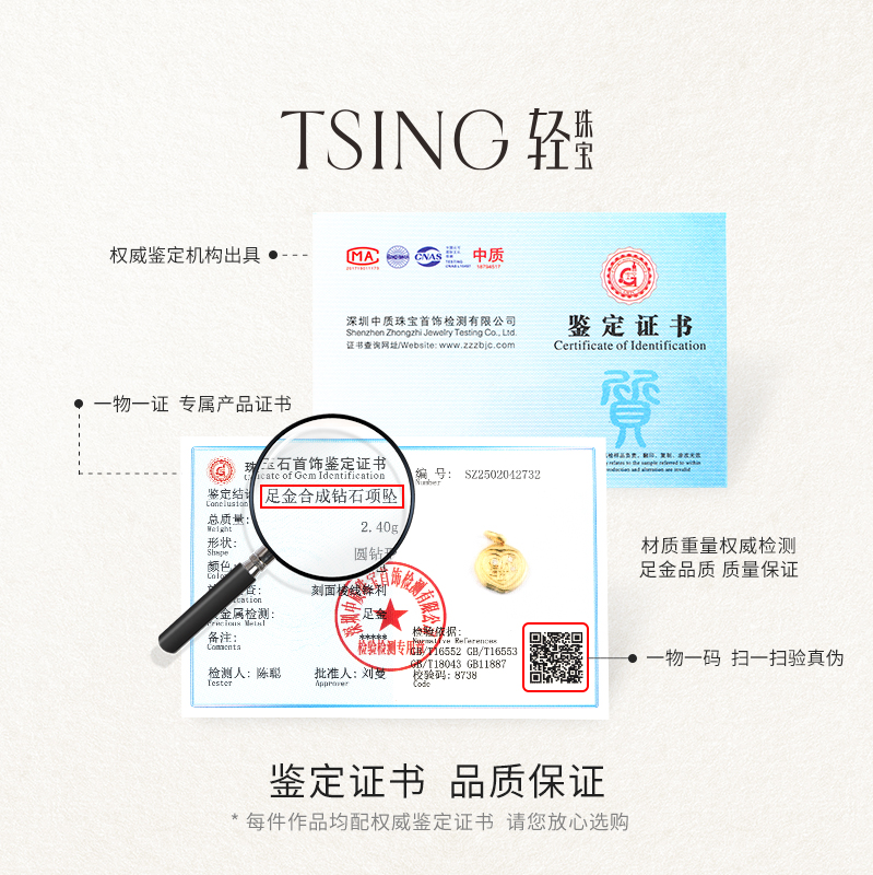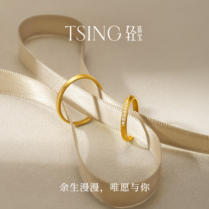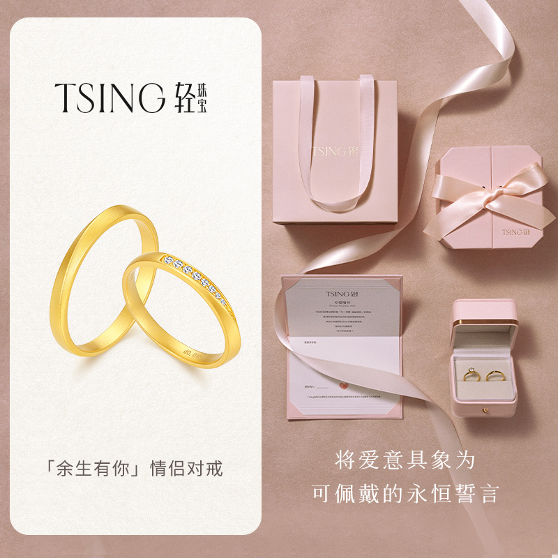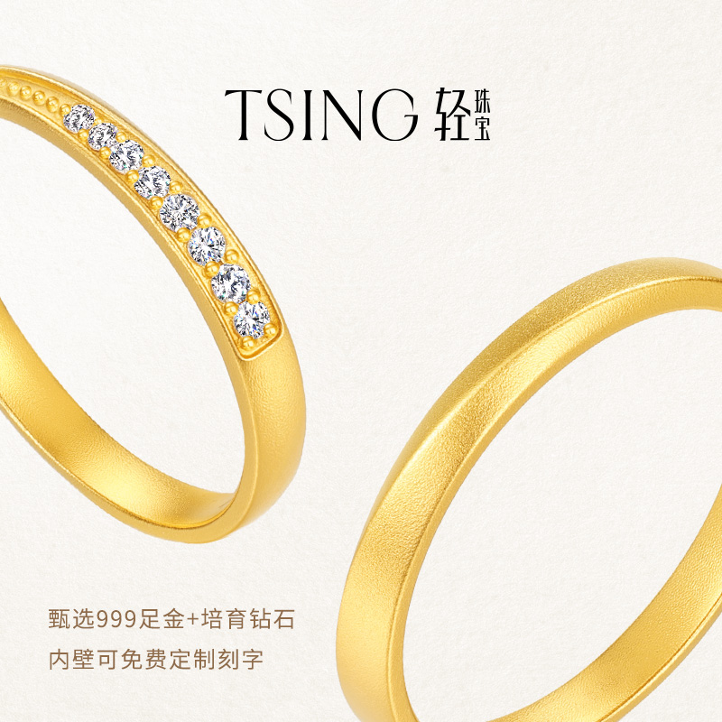 TSING轻珠宝【余生有你】999足金培育钻石实心黄金对戒结婚可刻字