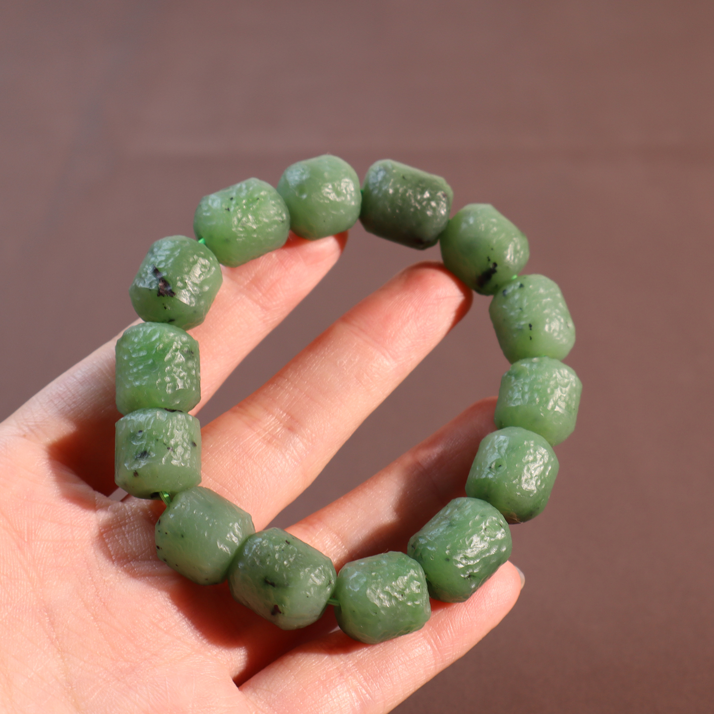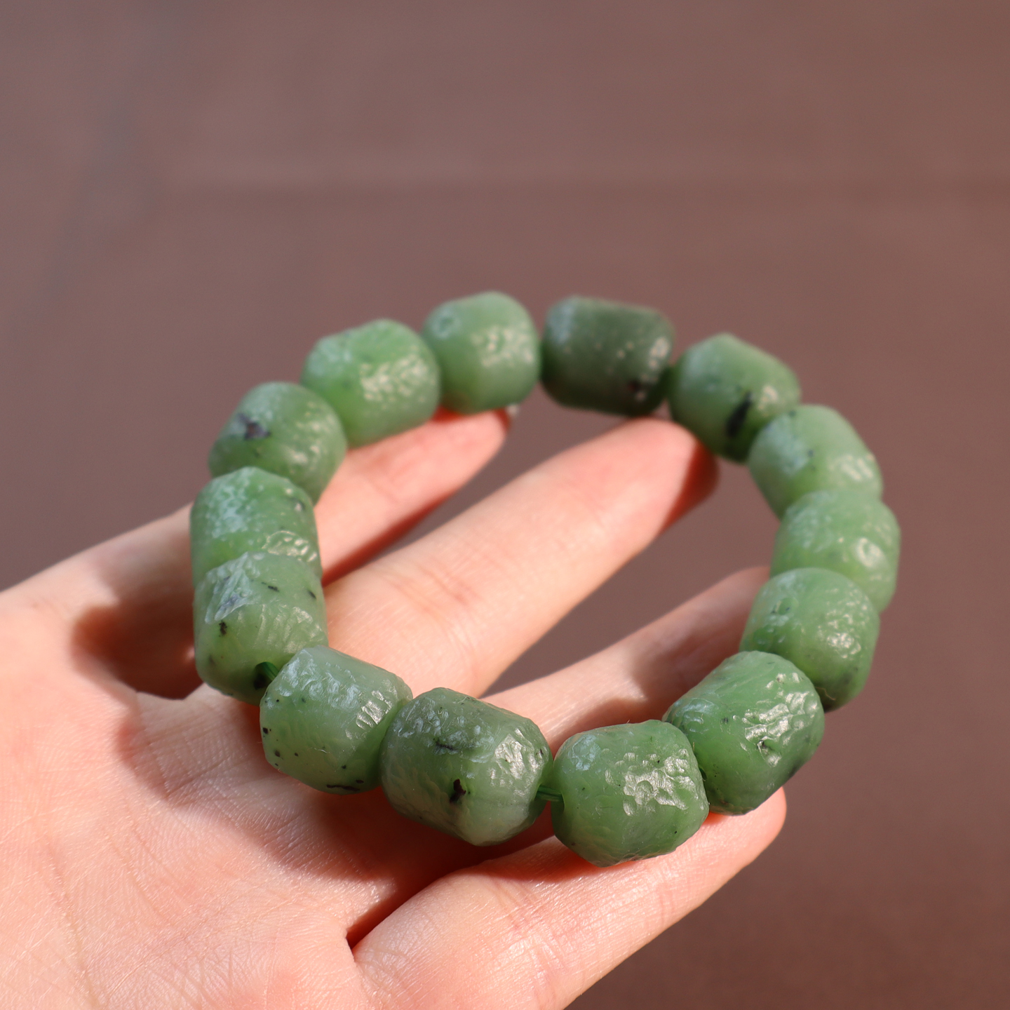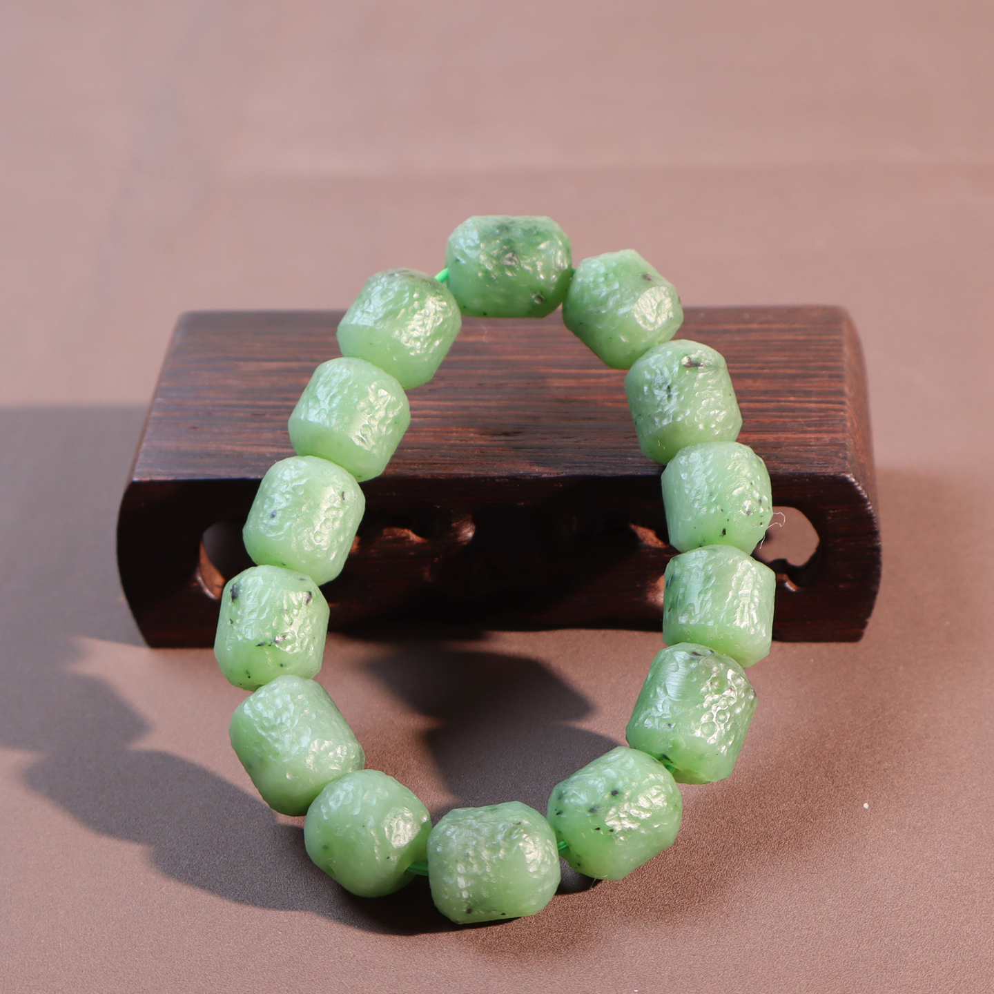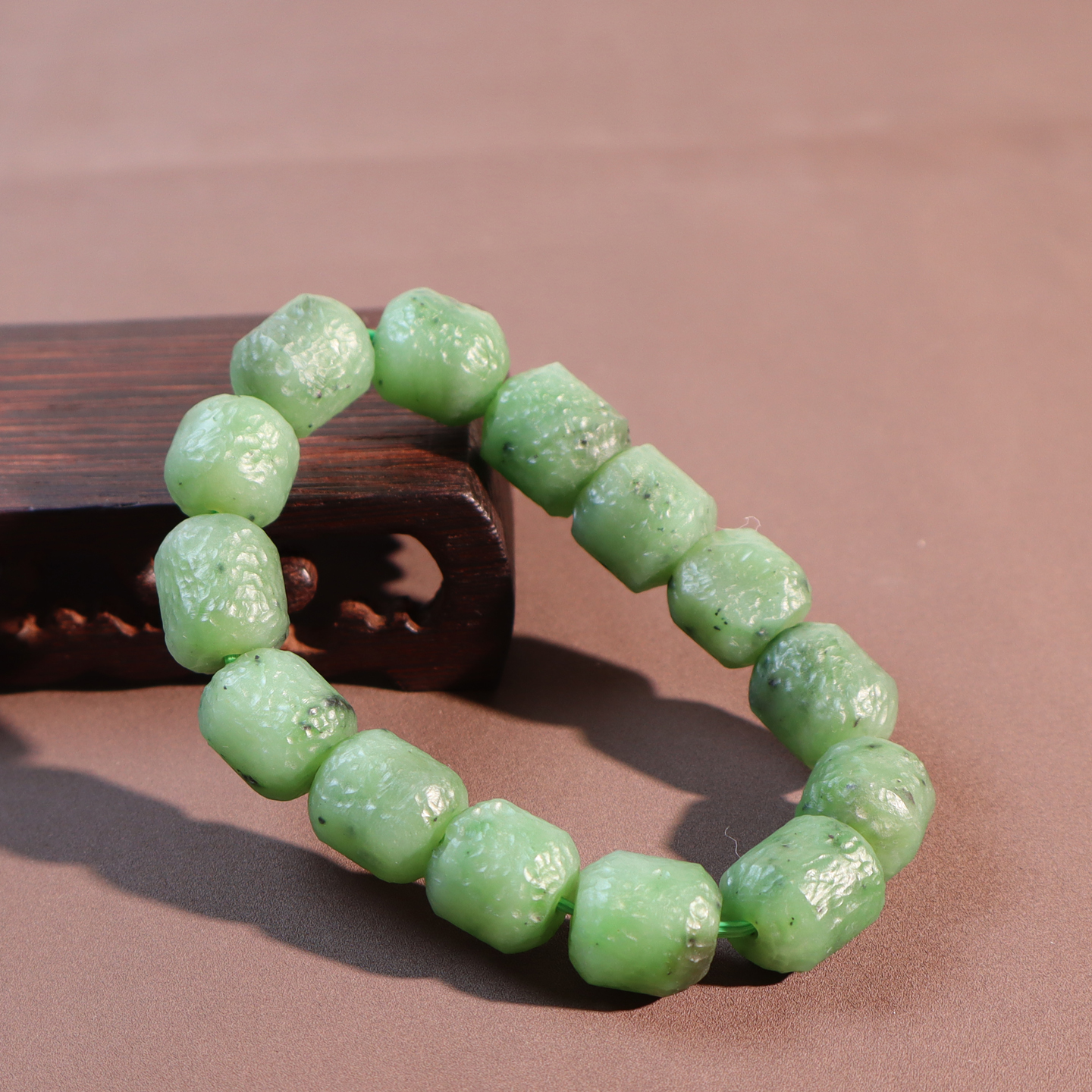 惊呆了方言和田玉俄罗斯油润阳绿色碧玉12mm桶珠老广工手串手链A2